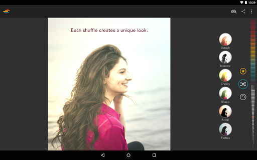 Shift lets you create your own personal photo filters with one tap of a button. Shuffle through an endless combination of textures, colors, and blends to produce stylish effects like gritty textures, vintage, light leaks, and high contrast black and whites.